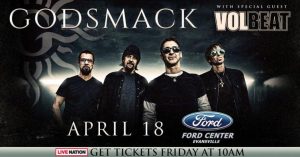 Godsmack will be in town at the Ford Center. This rock and roll concert will also have special guest VolBeat. For more information on this concert click here: Godsmack