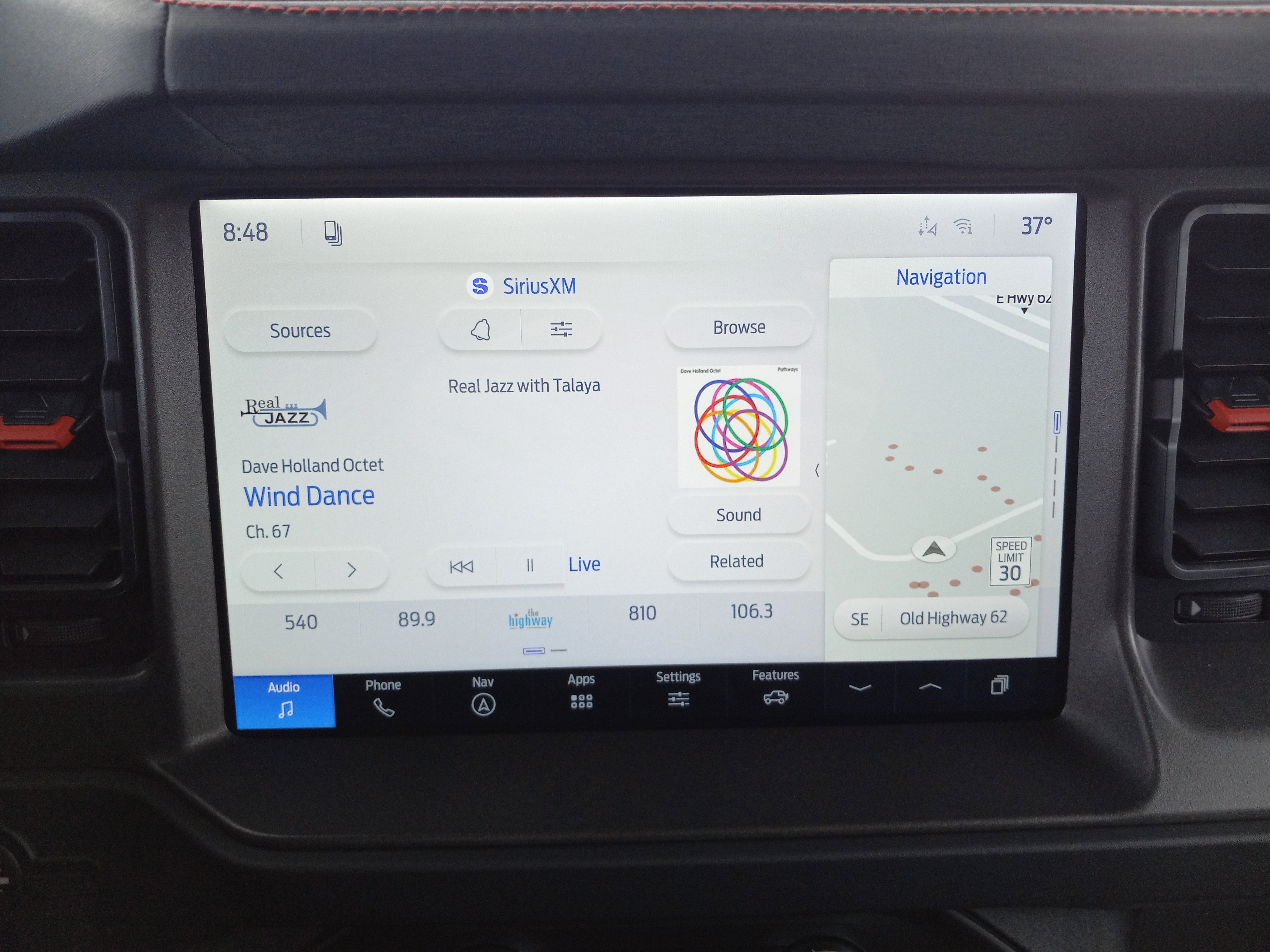 - Connected Navigation -inc: Ford connectivity package, pinch-to-zoom capability, live traffic, predictive destinations and route guidance and One Box search