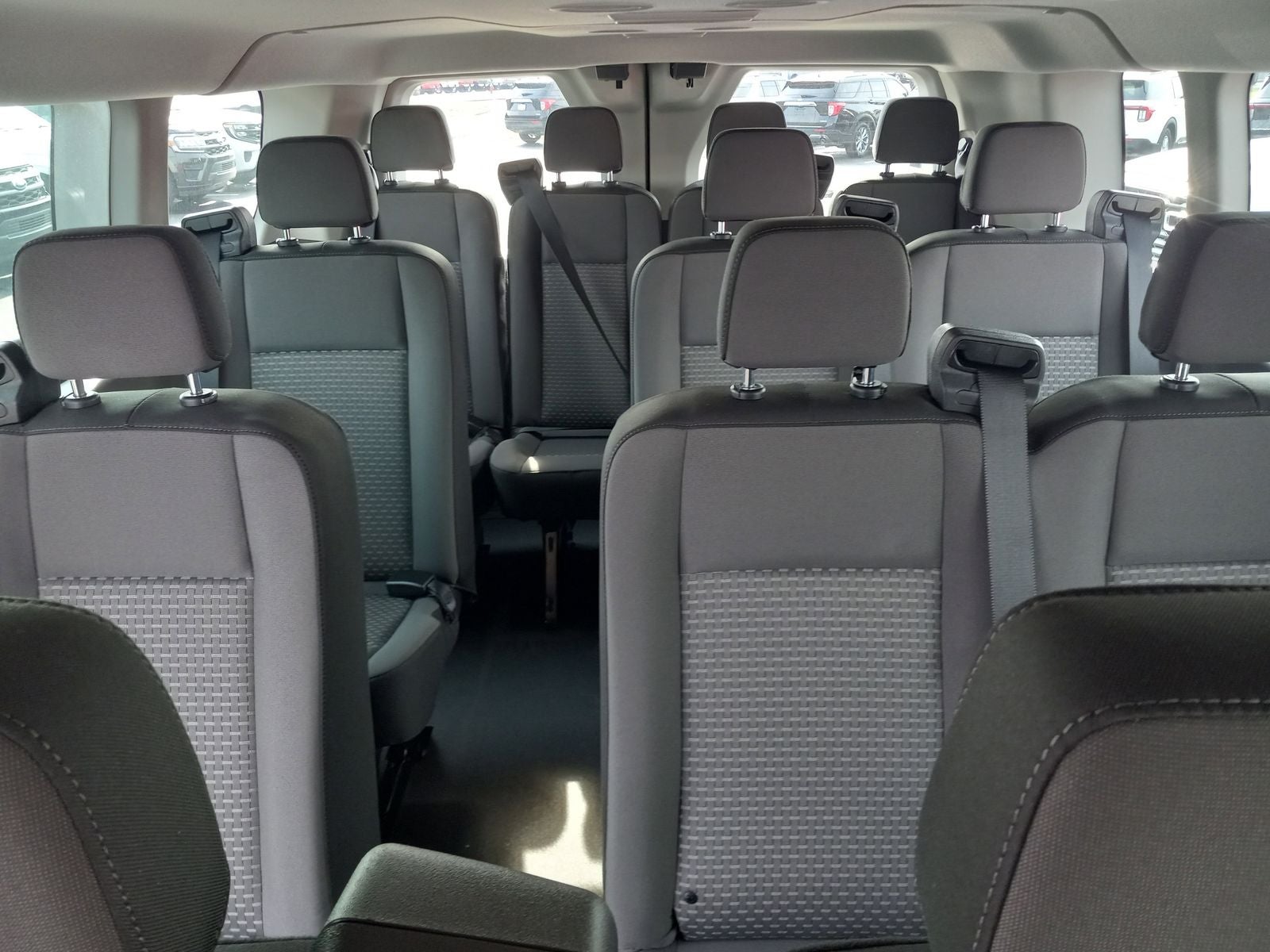 This vehicle includes the following Ford Connectivity Package (1-Year Included), 15-Passenger Seats, 3rd row seats: split-bench, 4-Wheel Disc Brakes, 4.10 Limited-Slip Axle Ratio, 4th-Row Bench Seat, 8 Speakers, ABS brakes, Air Conditioning, Apple CarPlay/Android Auto, Auto High-beam Headlights, Brake assist, Cloth Front Bucket Seats, Delay-off headlights, Driver door bin, Driver vanity mirror, Driver's Seat Mounted Armrest, Dual AGM Batteries (70 Amp-Hr Each), Dual front impact airbags, Dual front side impact airbags, Electronic Stability Control, Emergency communication system: 911 Assist, Front anti-roll bar, Front Bucket Seats, Front License Plate Bracket, Front reading lights, Front wheel independent suspension, Illuminated entry, Large Center Console, Low tire pressure warning, Midship Extended Range Fuel Tank (31 Gallons), Navigation system: Connected Navigation, Occupant sensing airbag, Overhead airbag, Panic alarm, Passenger door bin, Passenger seat mounted armrest, Passenger vanity mirror, Power door mirrors, Power steering, Power windows, Rain sensing wipers, Rear air conditioning, Rear window defroster, Remote keyless entry, Speed control, Steering wheel mounted audio controls, SYNC 4, Tachometer, Telescoping steering wheel, Tilt steering wheel, Traction control, Variably intermittent wipers, and Wheels: 16 Silver Steel with Exposed Lug Nuts.