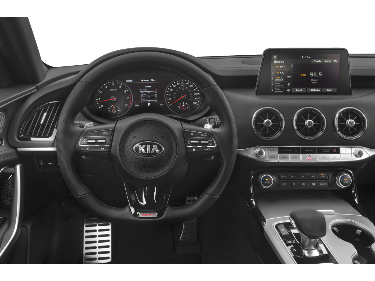 Scores 29 Highway MPG and 21 City MPG! This Kia Stinger delivers a Intercooled Turbo Premium Unleaded I-4 2.0 L/122 engine powering this Automatic transmission. PANTHERA METAL, CARPETED FLOOR MAT, BLACK, LEATHER SEAT TRIM.