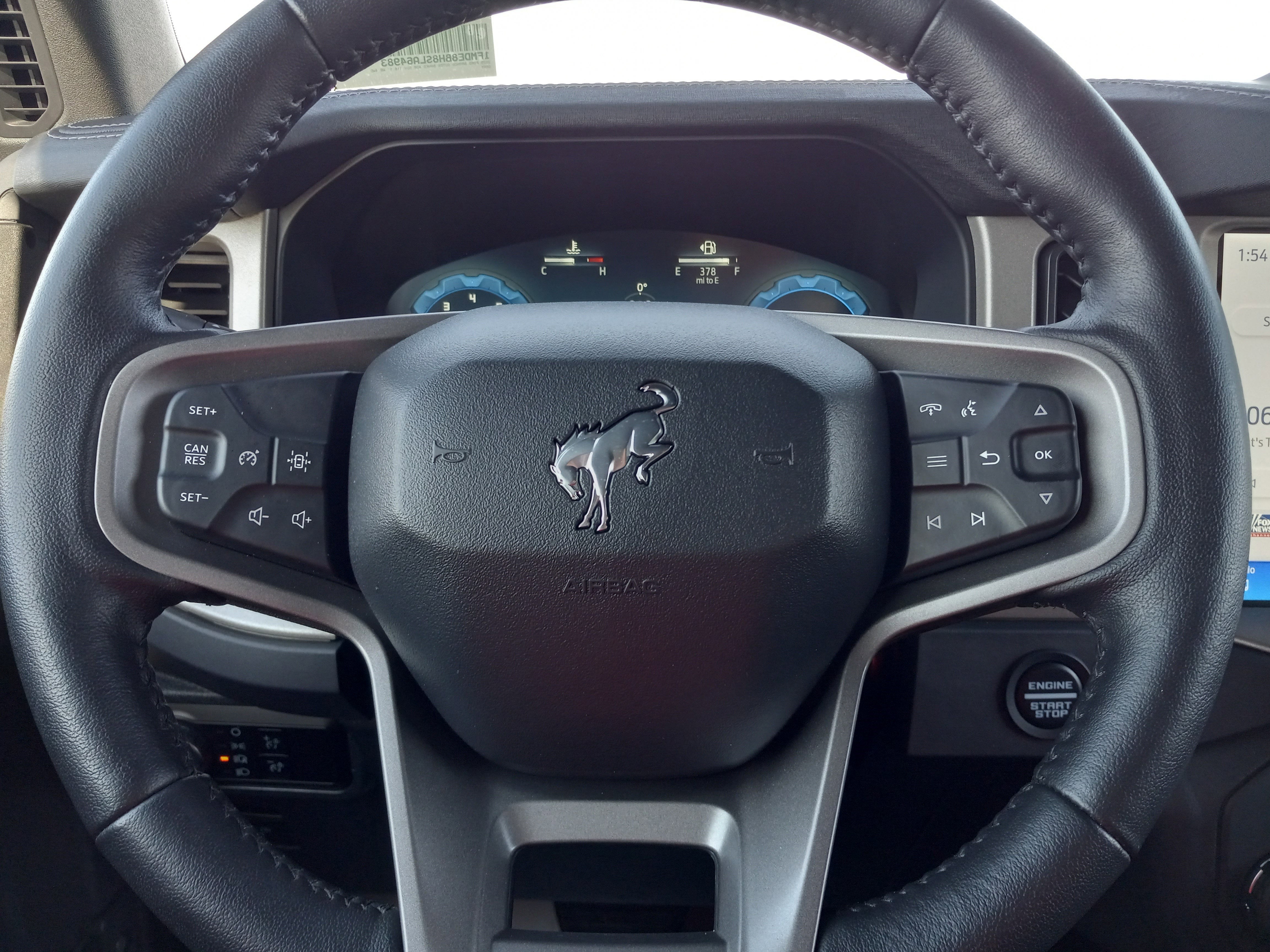 18 Bright Machined Aluminum Wheels, 4-Wheel Disc Brakes, ABS brakes, Air Conditioning, Auto High-beam Headlights, Automatic temperature control, Brake assist, Delay-off headlights, Dual front impact airbags, Dual front side impact airbags, Electronic Stability Control, Emergency communication system: 911 Assist, Equipment Group 312A Mid Package, Exterior Parking Camera Rear, Front anti-roll bar, Front Bucket Seats, Front Center Armrest, Front dual zone A/C, Front fog lights, Front reading lights, Front wheel independent suspension, Fully automatic headlights, Hard Top Sound Deadening Headliner, Heated door mirrors, Heated front seats, Heated Leather-Trimmed/Vinyl Bucket Seats, Heated steering wheel, Illuminated entry, Integrated roll-over protection, Internet access capable: FordPass Connect, Leather Shift Knob, Low tire pressure warning, Navigation system: Connected Navigation, Occupant sensing airbag, Outside temperature display, Overhead airbag, Overhead console, Painted Hard Top, Panic alarm, Passenger vanity mirror, Power door mirrors, Power driver seat, Power passenger seat, Power steering, Power windows, Radio data system, Rear seat center armrest, Rear-Window Defroster & Washer, Remote keyless entry, Security system, SiriusXM w/360L, Speed control, Split folding rear seat, Steering wheel mounted audio controls, SYNC 4, Tachometer, Telescoping steering wheel, Tilt steering wheel, Traction control, Trip computer.