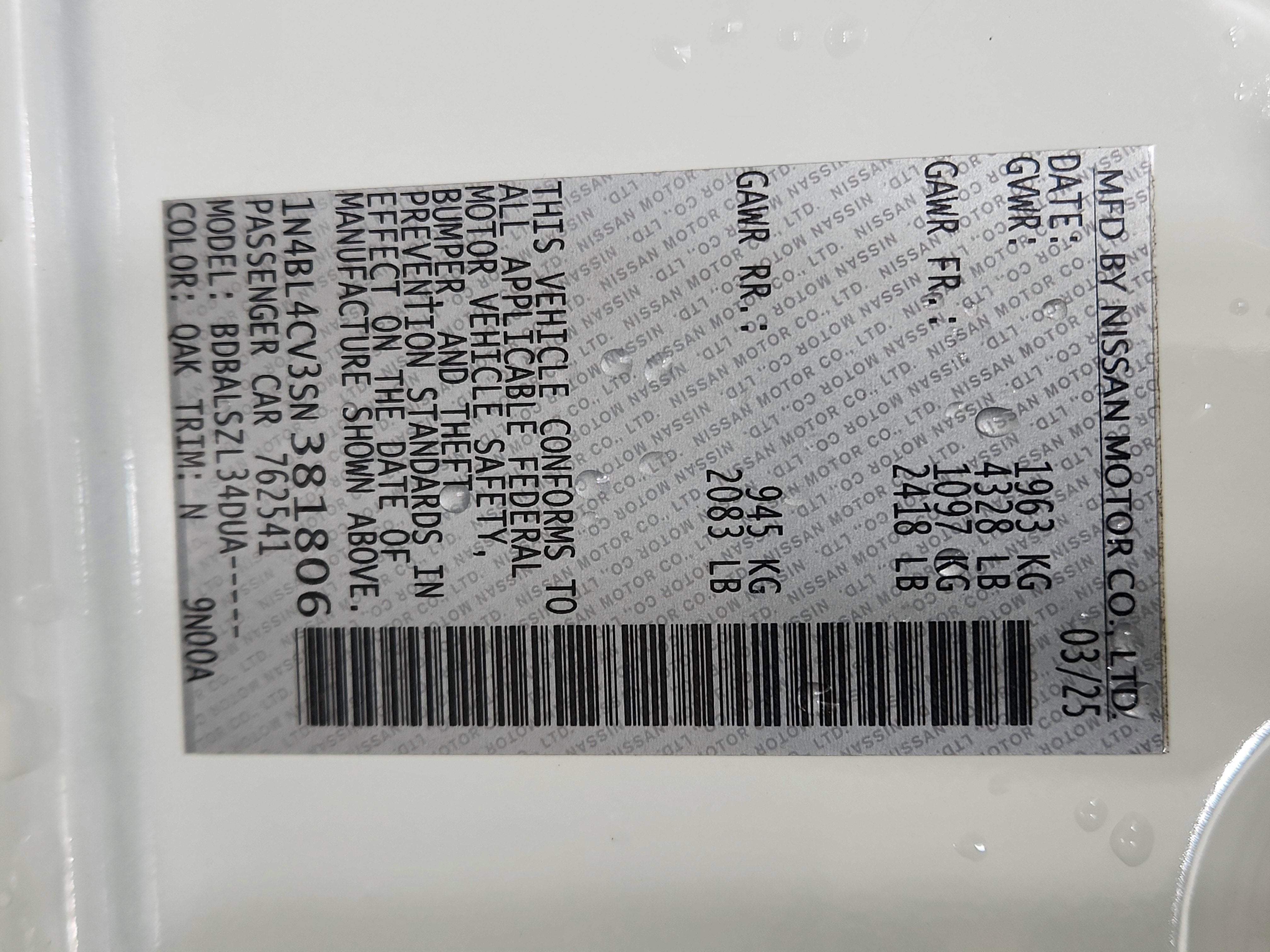 - Vehicle Name: Nissan Altima