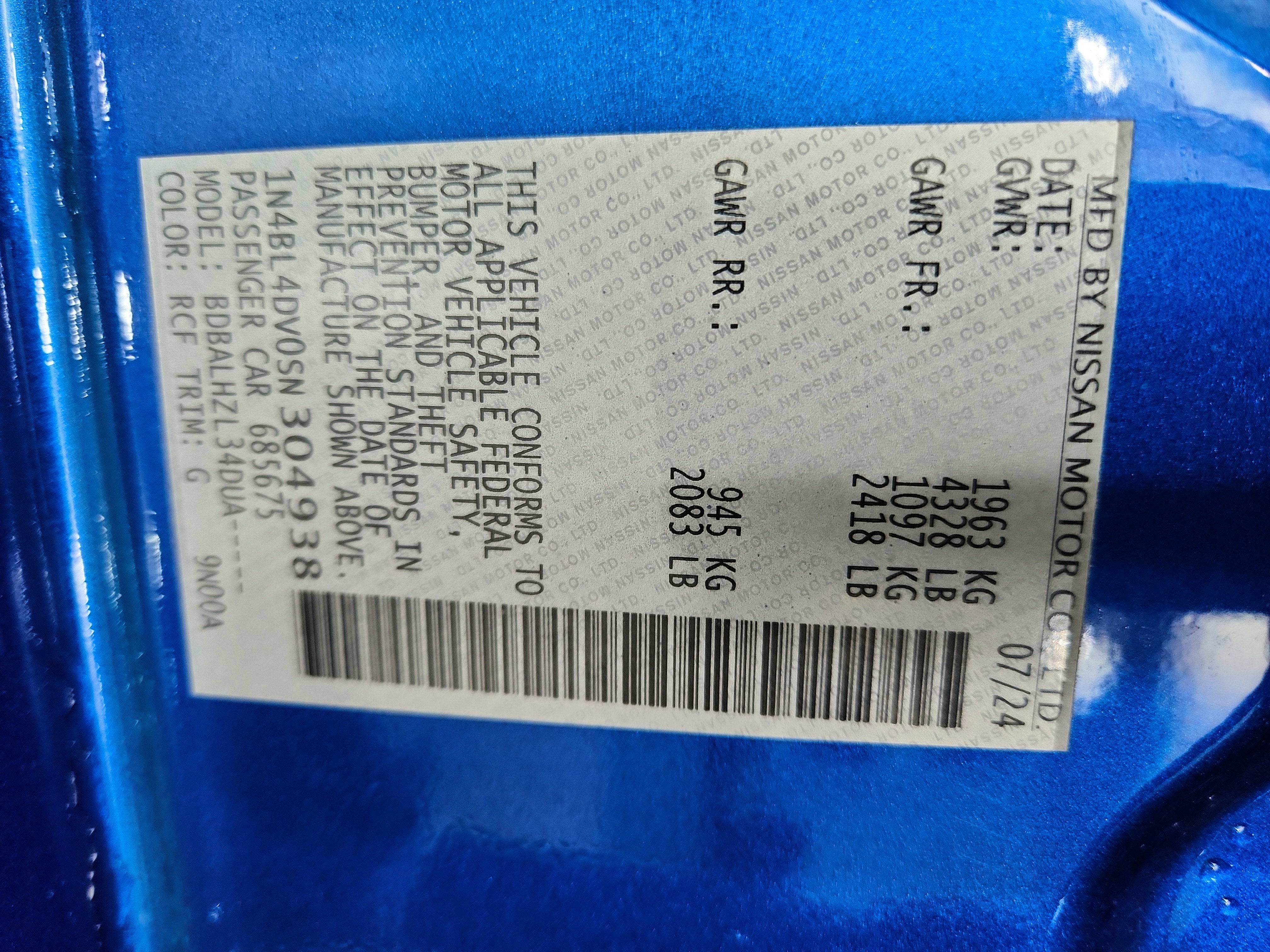 - Vehicle Name: Nissan Altima