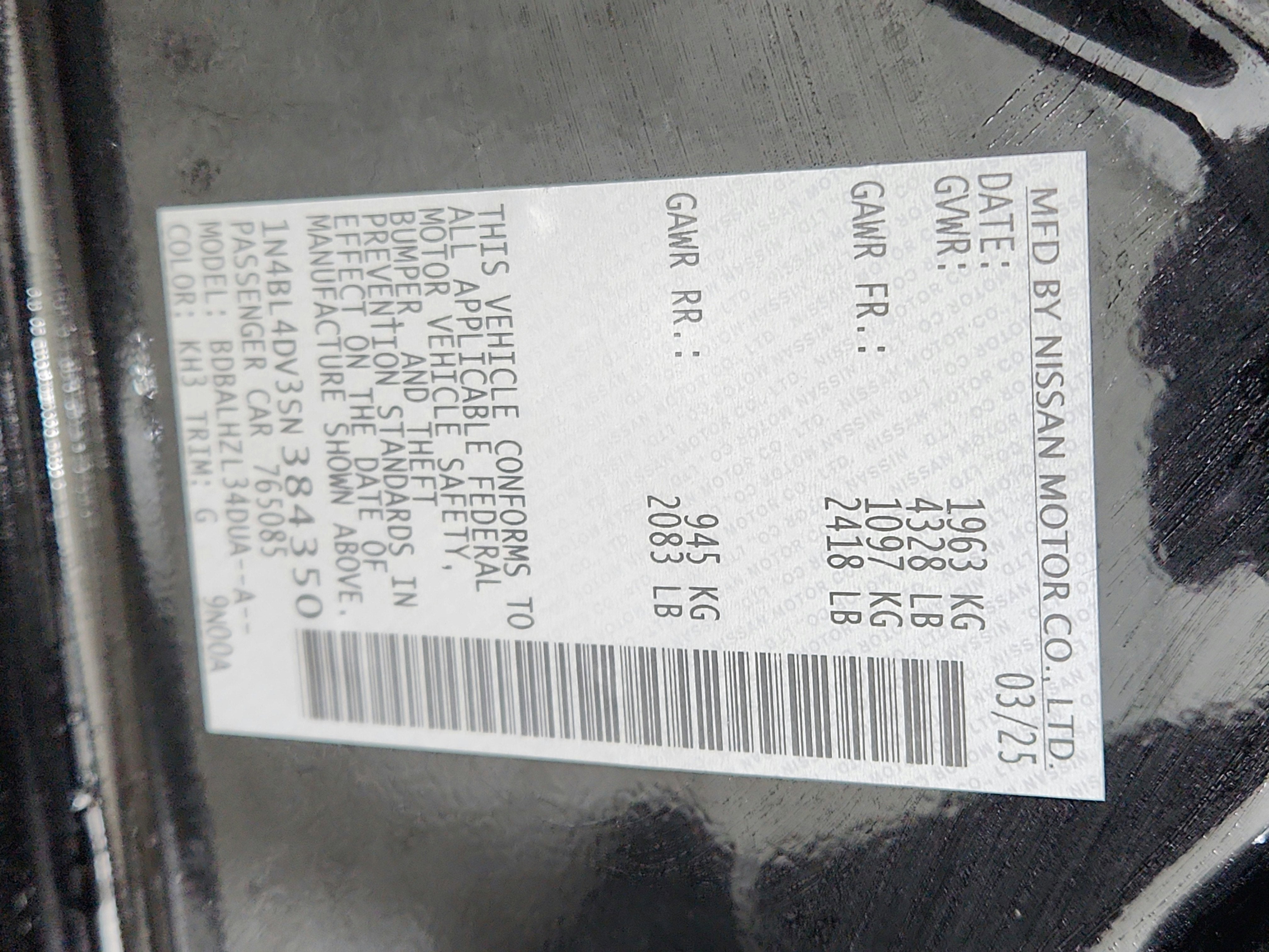 - Vehicle Name: Nissan Altima
