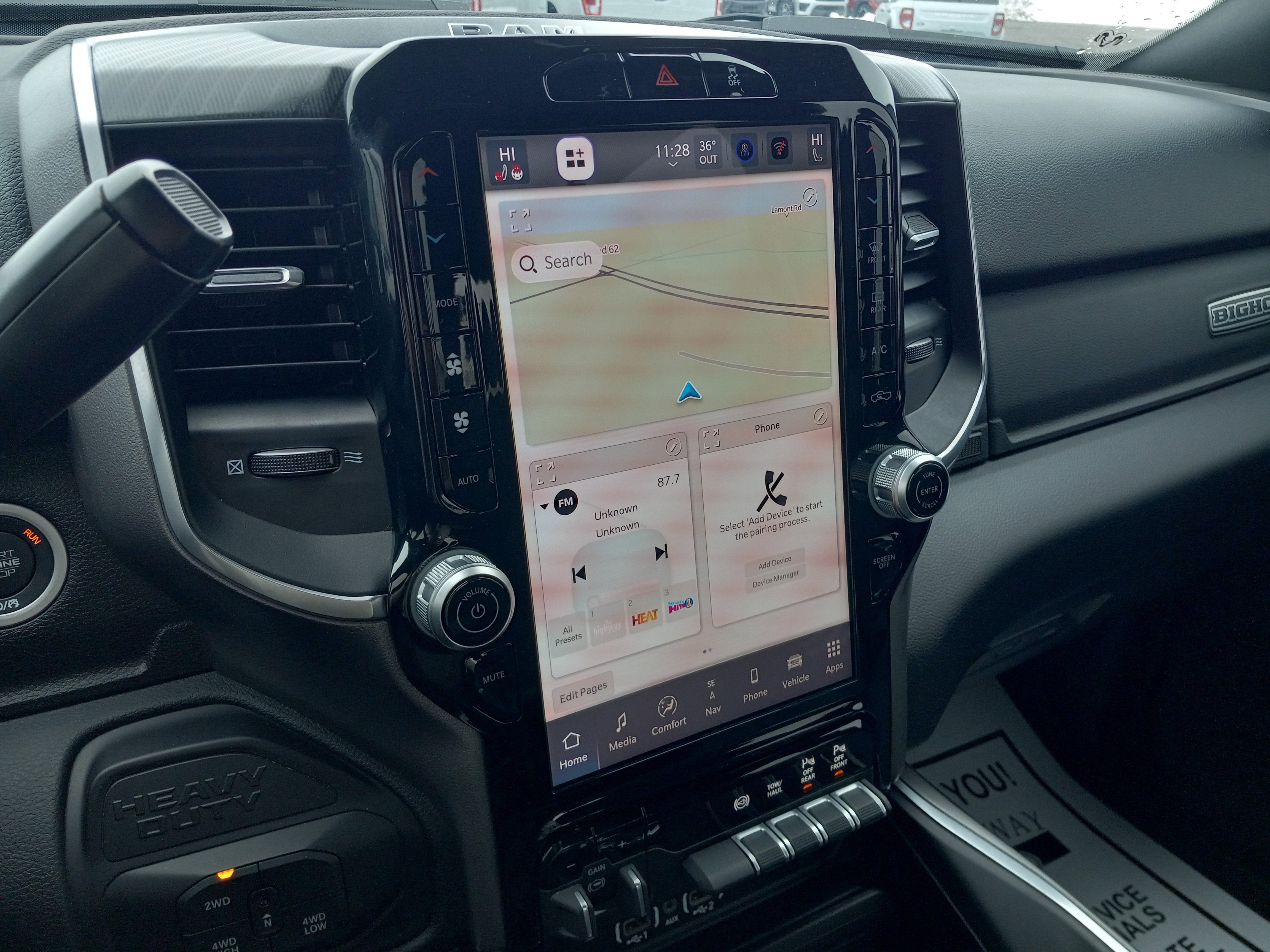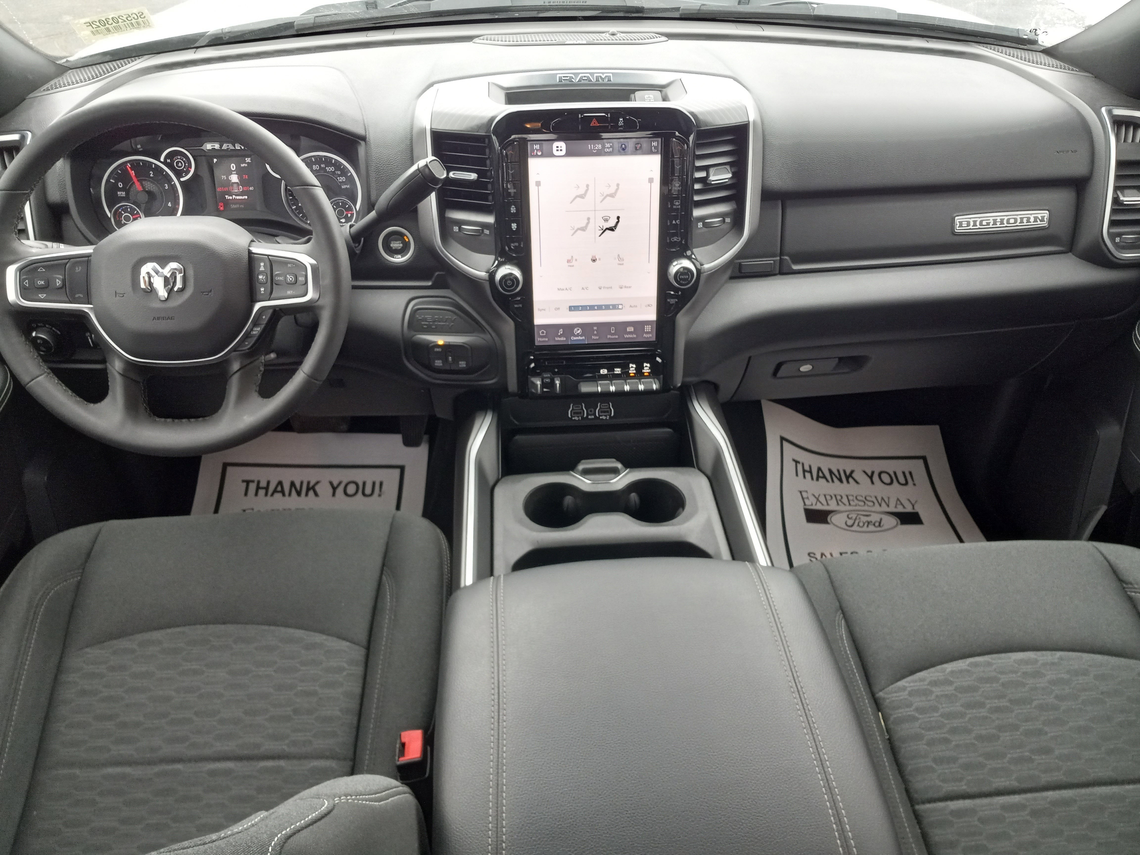 12 Touchscreen Display, 2 Way Rear Headrest Seat, 2nd Row In Floor Storage Bins, 4 Way Front Headrests, 40/20/40 Split Bench Seat, 4G LTE Wi-Fi Hot Spot, 9 Alpine Speakers w/Subwoofer, Air Conditioning ATC w/Dual Zone Control, Alexa Built-In, Apple CarPlay, Auto Power-Folding Mirrors, Auto-Dimming Rear-View Mirror, Big Horn Level 1 Plus Equipment Group, Black Exterior Mirrors, Cloth 40/20/40 Premium Bench Seat, Connected Travel & Traffic Services, Connectivity - US/Canada, Dual Glove Boxes, Emergency Vehicle Alert System (EVAS), Exterior Mirrors Courtesy Lamps, Exterior Mirrors w/Heating Element, Exterior Mirrors w/Supplemental Signals, Foam Bottle Insert (Door Trim Panel), Folding Flat Load Floor Storage, Footwell Courtesy Lamp, For Details Visit DriveUconnect.com, For More Info, Call 800-643-2112, Forward & Reverse Utility Lights, Front Armrest w/Cupholders, Front Center Seat Cushion Storage, Front Seat Back Map Pockets, Global Telematics Box Module (TBM), Glove Box Lamp, Google Android Auto, GPS Antenna Input, GPS Navigation, HD Radio, Heated Front Seats, Heated Seats & Wheel Group, Heated Steering Wheel, Integrated Voice Command w/Bluetooth®, LED Bed Lighting, Locking Lower Glove Box, Luxury Steering Wheel, Manual Adjust 4-Way Front Passenger Seat, Mirror Running Lights, MOPAR Deployable Bed Step, MOPAR Spray In Bedliner, Off-Road Information Pages, Power 2-Way Driver Lumbar Adjust, Power Adjust 8-Way Driver Seat, Power Adjust Mirrors, Power Heated Fold Telescopic Mirrors, Power Telescoping Mirrors, Power-Adjustable Convex Aux Mirrors, Quick Order Package 24Z Big Horn, Radio: Uconnect 5 Nav w/12.0 Display, Rear 60/40 Folding Seat, Rear Dome w/On/Off Switch Lamp, Remote Start System, Remote USB Port - Charge Only, Selectable Tire Fill Alert, SiriusXM Radio Service, SiriusXM w/360L, Steering Wheel Mounted Audio Controls, Storage Tray, Trailer Tow Pages.